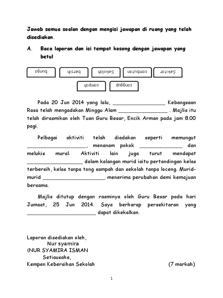 Contoh kertas peperiksaan bahasa malaysia tahun 3 (kertas 2).